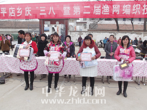 比賽在商水縣平店鄉一中運動場舉行。簡短的開幕儀式后,編織漁網大賽如期舉辦。隨著裁判員一聲號令,參賽選手飛針引線、織梭飛舞,個個精神飽滿、神采飛揚。裁判認真計時對比,觀眾加油助威,比賽場面熱烈沸騰。根據比賽規則,經過兩輪共計60分鐘的激烈角逐,大賽評出了一二三等獎和優秀獎。