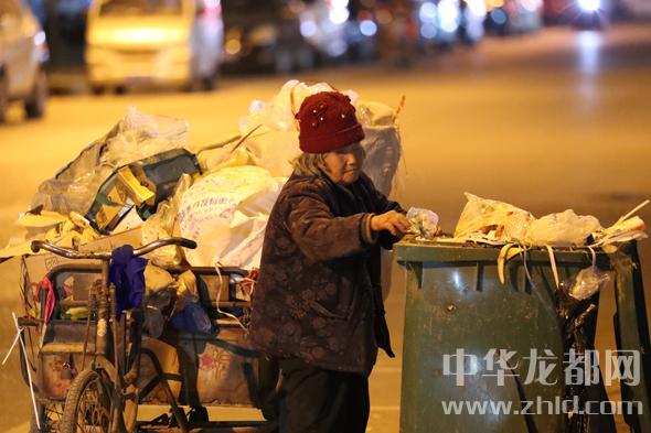 如果天氣允許,每天傍晚6點半到深夜11點之間,在淮陽縣西關弦歌西路和新民南路交叉口附近,你都會見到一位身材矮小、騎著或推著一輛破舊三輪、上年紀、一只眼睛失明的老奶奶,在一個又一個垃圾桶前停下,翻揀廢舊紙箱、塑料瓶。把揀拾的廢品放上三輪車,老人還不忘用隨身帶的鐵锨清理好凌亂的垃圾,再到下一個垃圾桶邊繼續翻揀。