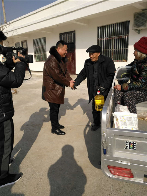 中華龍都網(wǎng)訊(周口報業(yè)全媒體記者張勁松文/圖)2月13日,農歷臘月二十八,東莞市河南商會會長、東莞市昶宏集團董事長、周口市東新區(qū)許灣鄉(xiāng)葉莊行政村村主任熊茂禮千里回鄉(xiāng),走訪慰問村里49家貧困戶,為他們送去了米、面、油等慰問品和慰問金,并送上了新年的祝福。