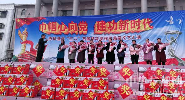 3月5日,西華縣舉辦慶“三八”婦女節脫貧攻堅移風易俗文藝會演,對64名優秀女性和3個團體進行了表彰。記者姬慧洋攝