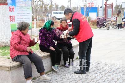 細心的志愿者們還為健身、散步、游玩的市民準備了開水和杯子,為他們驅走寒意、溫暖雙手、滋潤心田。“俺孩兒在家也沒想著給我倒杯水喝啊,恁還大老遠給我送來!”接過志愿者手中的開水,一位老人十分激動。