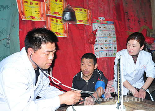 安樓村的張娃是典型的貧困戶,今年60歲,患有嚴重的胃病,精神有些殘疾的妻子三年前走失,撇下兩個女兒需要撫養。“我沒錢看病,不知道張醫生兩口子給我墊錢多少了,我兩個女兒的衣服都是他女兒穿過的衣服給俺的,有時過年還給新衣服,他兩口子每一星期都要來俺家給俺問診,這真是俺一家人的福氣呀!”張娃說著哭了起來。王磊還幫貧困戶朱玉進學習裝修技術,并給他找活干,不到半年幫助朱玉進脫貧。