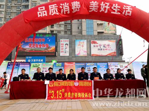 中華龍都網訊(周口報業全媒體記者 杜欣 文/圖)3月15日上午,淮陽縣消費者協會組織當地相關職能部門,在潤德廣場舉辦2018年3·15國際消費者權益日紀念大會暨大型宣傳咨詢服務活動。淮陽縣人大副主任、縣消費者協會會長霍偉,淮陽縣人民政府副縣長薛燕等參加活動。活動現場,職能部門專門設立了執法“別動隊”,在接受消費者現場投訴后,隨時出動處理。