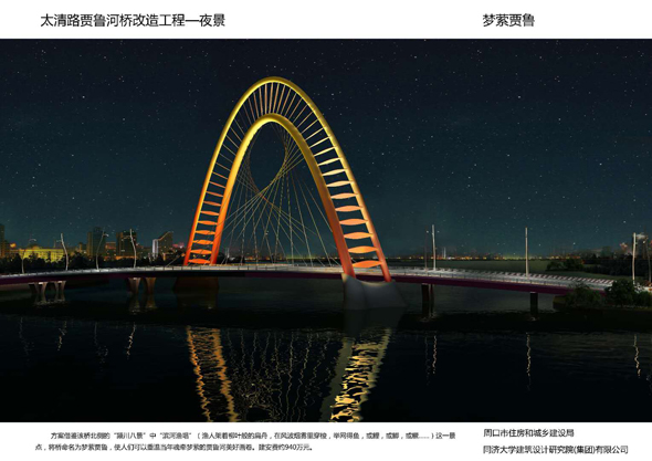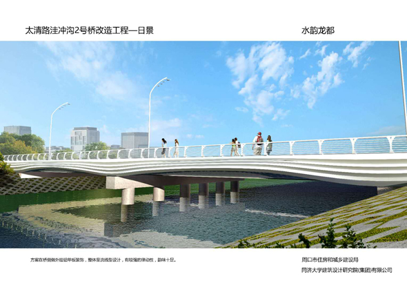 周口大道沙潁河橋景觀改造,設(shè)計(jì)造型簡(jiǎn)單柔美,如行云流水,同時(shí)與沙潁河景觀帶相融合,給城市增添了生機(jī)與活力。周口大道賈東干渠橋以荷葉為設(shè)計(jì)元素,造型簡(jiǎn)約而不失細(xì)節(jié)。周口大道流沙河橋造型簡(jiǎn)潔大氣,線條流暢,像一條青龍游弋在水面上。文昌大道幸福河橋以花瓣、葉子為設(shè)計(jì)元素,造型豐富多彩。文昌大道流沙河故道橋在中分帶位置修建花壇,花壇造型莊重古樸,景石造型端莊沉穩(wěn)。太清路流沙河橋以古建斗拱、窗花為元素,造型儒雅大方。太清路洼沖溝2號(hào)橋以“輻轂相依”為名,既融合環(huán)境,又有團(tuán)結(jié)、合作的寓意。太清路賈魯河橋,增加了景觀造型,使人們可以重溫當(dāng)年賈魯河的美好畫卷。彭新莊橋以柳葉為元素,預(yù)示著留住賓客與送別親友的不舍之情的雙重含義。