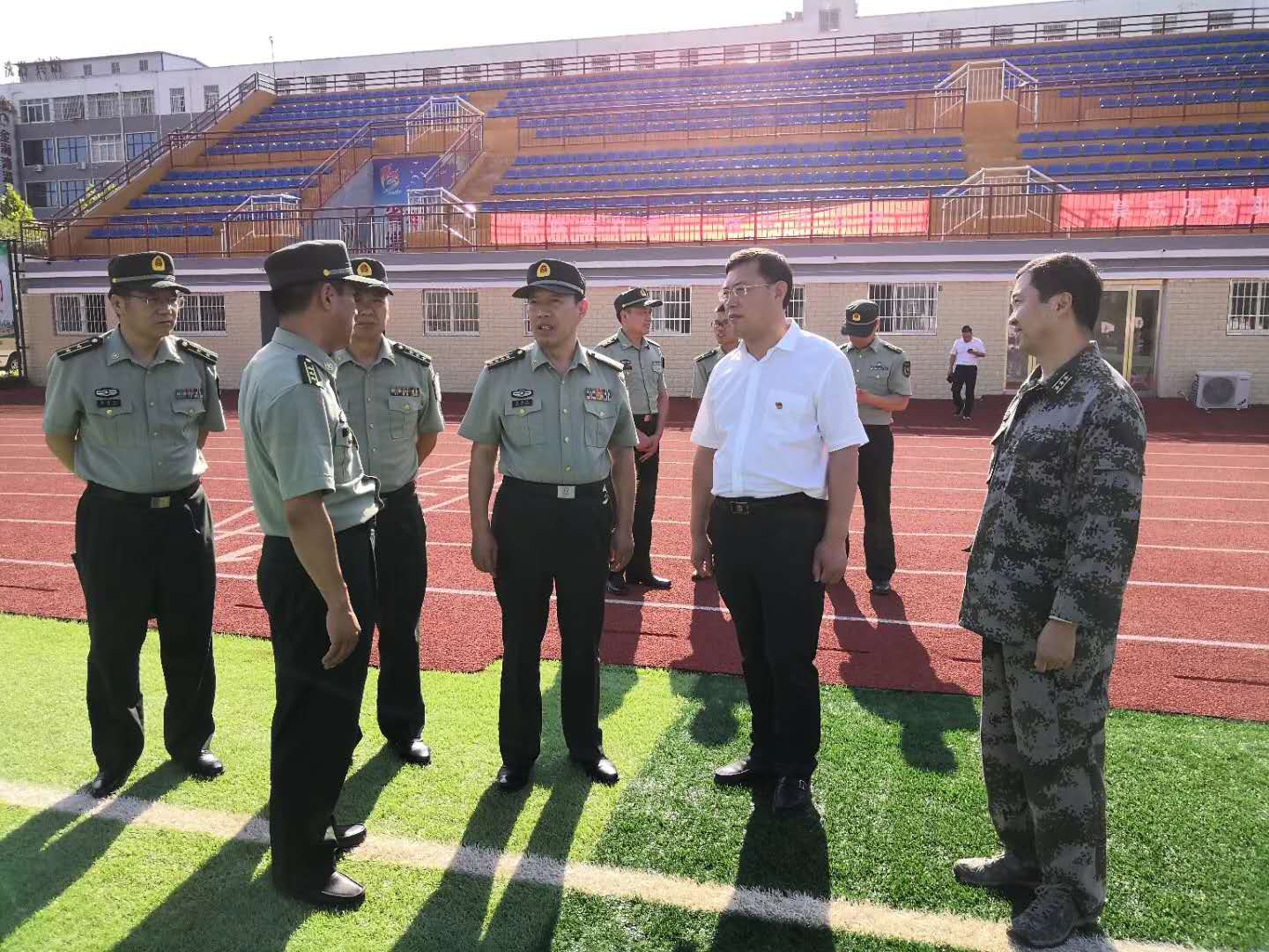 在縣委書記馬衛東,縣委常委、縣人武部政委李強,縣人武部部長何永華等人的陪同下,王善沖一行實地察看了新兵役前訓練情況,與新兵進行親切交談,詳細詢問了解訓練生活情況。