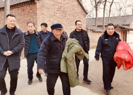 春節將至,1月20日,鄲城縣寧平派出所所長王廣宇帶領民警,到腰莊行政村走訪慰問抗洪搶險烈士周磊的家屬,送去了面粉、棉被、大衣等慰問品,向他的家人致以新春的祝福。