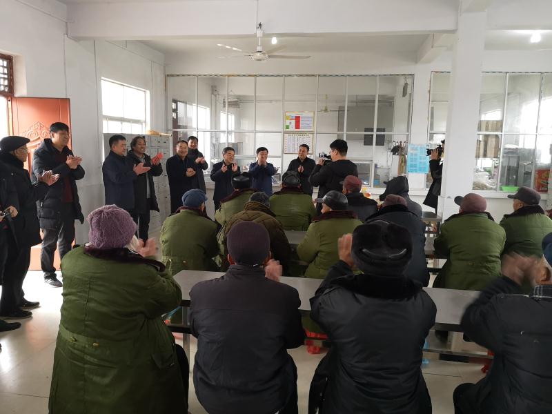 走進付井鎮敬老院,處處洋溢著過年的喜慶氣氛,院里80多位五保老人向皇甫立新一行的到來表示熱烈歡迎,嘮家常,話感恩,感激之情溢于言表。皇甫立新走進敬老院食堂查看了年貨置辦情況,和院里老人們親切交談,噓寒問暖,詳細了解老人們的日常生活以及敬老院人員入住、管理情況,并代表縣四個班子領導向老人們拜年問好,送上慰問金和慰問品,祝愿老人身體健康、新春快樂,同時要求相關部門要做好老人過節物資供應、食品安全和用電安全等項工作,保證全院老人過上一個歡樂、祥和、安全的春節。