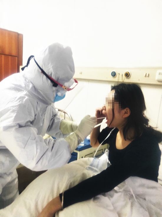 “第一次給疑似病人采集咽拭子時(shí),說實(shí)話,難免有點(diǎn)緊張。病人張大嘴巴,棉簽剛一伸進(jìn)去,他就干嘔起來,然后猛烈嗆咳,連續(xù)兩次才完成采樣。”胡敏在剛剛結(jié)束一例標(biāo)本采集后說:“現(xiàn)在,我都是下手又快又準(zhǔn),避免病人干嘔和嗆嗽。”