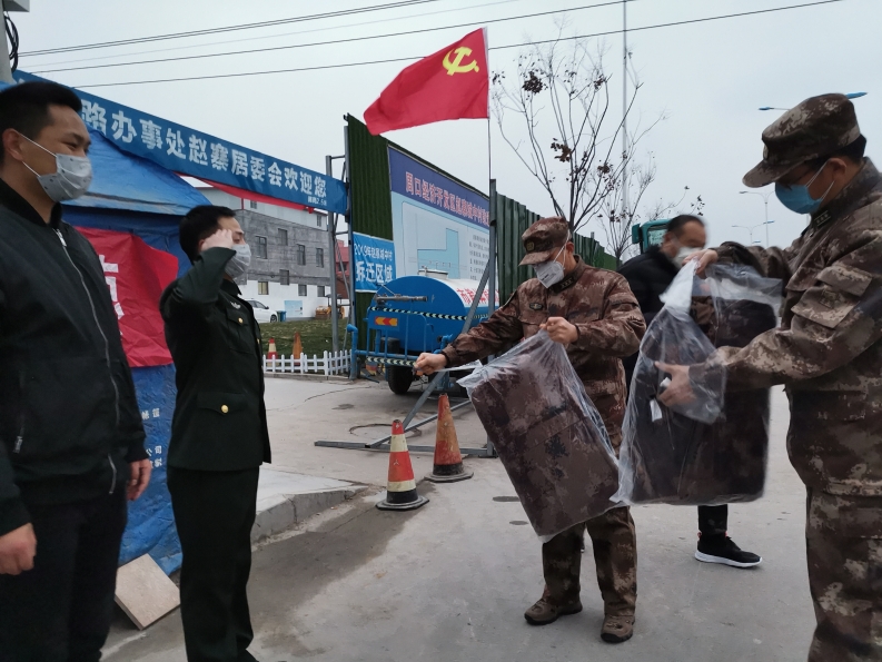 在淮河路辦事處趙寨居委會執勤點,探親在家兩名現役戰士趙為為、趙繼周疫情發生后堅持在防控一線執勤點執勤。當晚6時許,天色漸黑,了解到這一情況后,部長和政委依然驅車趕到現場,詳細了解兩名戰士的服役情況,并給他倆每人送了一件軍用大衣,提醒注意自身安全,有啥需求第一時間和武裝部溝通聯系。
