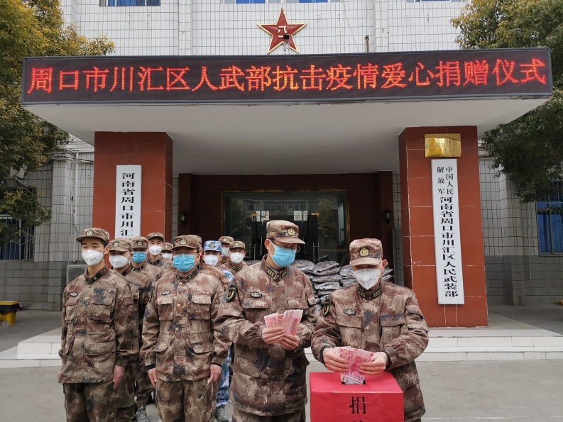 “疫情防控 匹夫有責”、“軍民同心 戰疫必勝”懸掛在川匯區人武部大門口的這兩幅標語格外醒目,喊破嗓子不如干出樣子,他們這樣說的,更是這樣干的。2月6日下午,在部長陳繼芳、政委高新傳的號召下,干部職工們共捐款4135元,還將購買到的141件07式荒漠軍用迷彩大衣送到防疫一線執勤點,用實際行動詮釋了軍民一心共同“戰疫”的決心和信心。