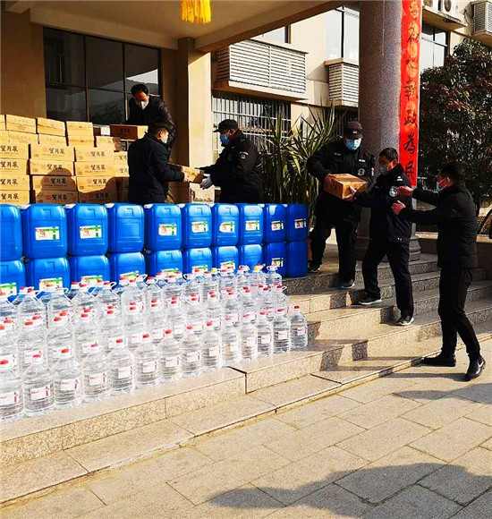 華德保安集團(tuán)董事長丁華帶隊(duì)前往鹿邑縣公安局送去疫情防控物資,醫(yī)用酒精消毒液1噸、醫(yī)用84消毒液1噸、望月泉天然山泉水200箱等慰問品及深切的囑托,對(duì)戰(zhàn)斗在防"疫"一線的公安民警進(jìn)行慰問。