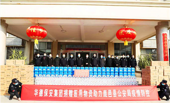 捐贈(zèng)現(xiàn)場鹿邑縣公安局黨委委員副局長孫鑫仁、局黨委委員汲德民,向華德集團(tuán)表示由衷的感謝,高度贊揚(yáng)華德集團(tuán)作為鹿邑縣安保企業(yè)不忘初心,以實(shí)際行動(dòng)為打贏疫情阻擊戰(zhàn)貢獻(xiàn)力量,彰顯了華德集團(tuán)的責(zé)任與擔(dān)當(dāng)。
