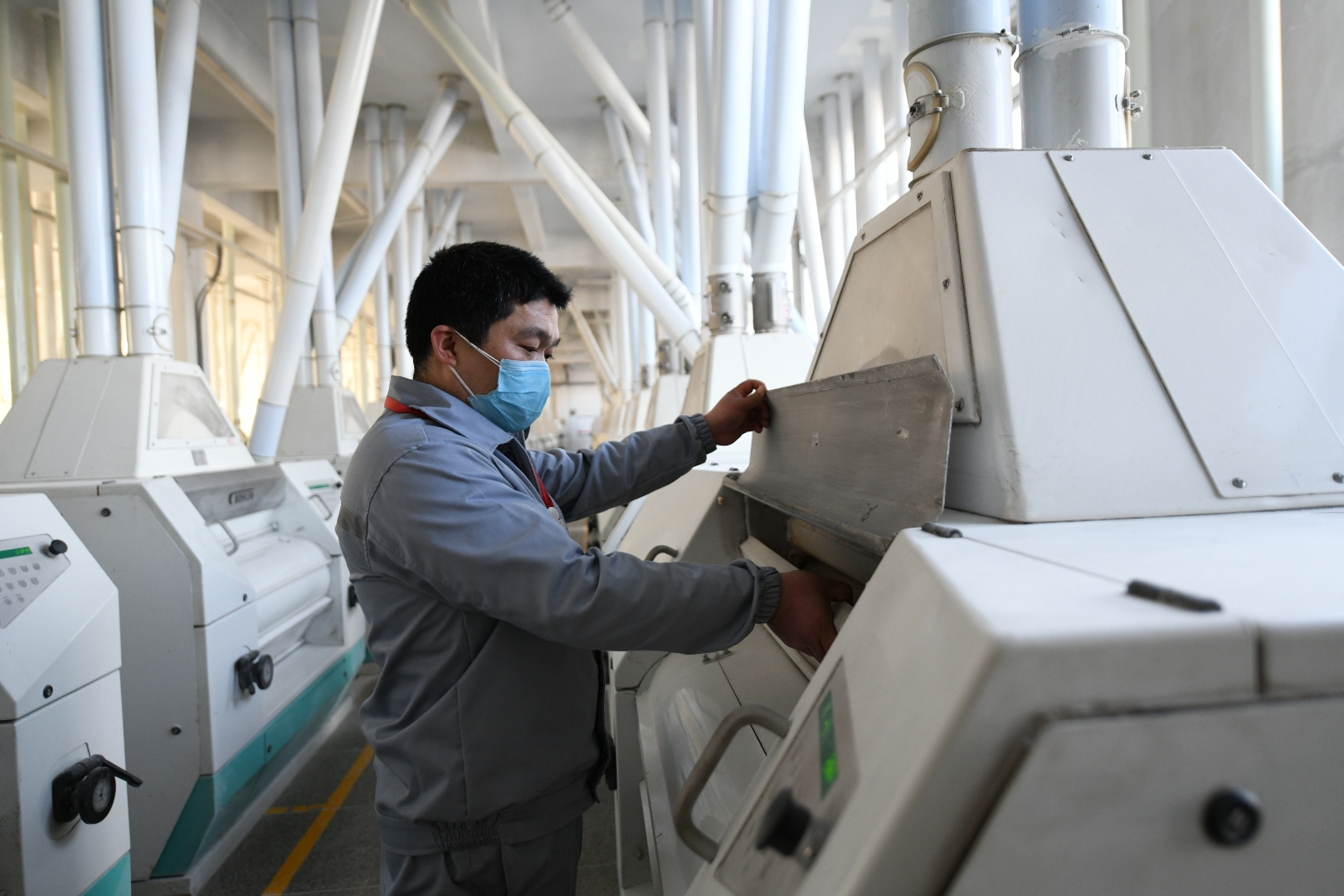 昨日,在五得利集團周口面粉有限公司的生產車間內,記者看到,工人們戴著口罩緊張有序地忙碌著。該企業(yè)于2月2日全面復工,目前日處理小麥3000噸、生產面粉2300噸。