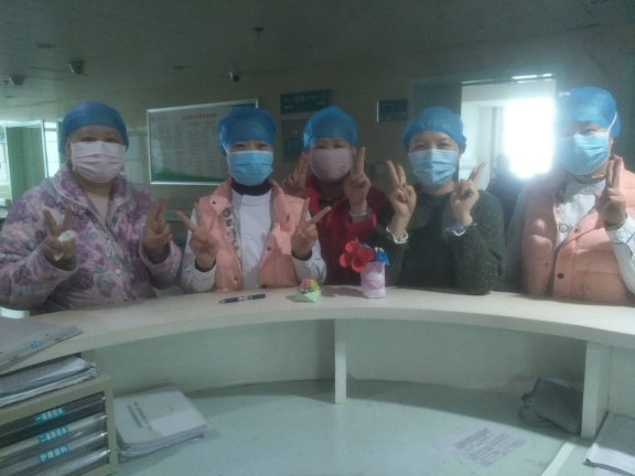 2月25日上午, 35床的王娟娟帶著幾位同樣是腫瘤患者的“朋友”, 捧著一束用紙折疊的自制手捧花,有玫瑰、有百合,一起走向護士站。王娟娟向醫護人員說道 “我們同為腫瘤患者,是屬于免疫力最低的一個群體,在疫情爆發期間,我們的心情無比恐慌、擔心和害怕。是你們給了我們安慰、理解和幫助。你們每天對病房進行消毒、通風,不斷叮囑我們勤洗手、戴口罩,鼓勵我們克服困難、戰勝病魔、樹立生活信心,你們無微不至的關懷帶給了我們很多感動與鼓勵,你們的責任心更讓我們佩服,真心感謝你們……”