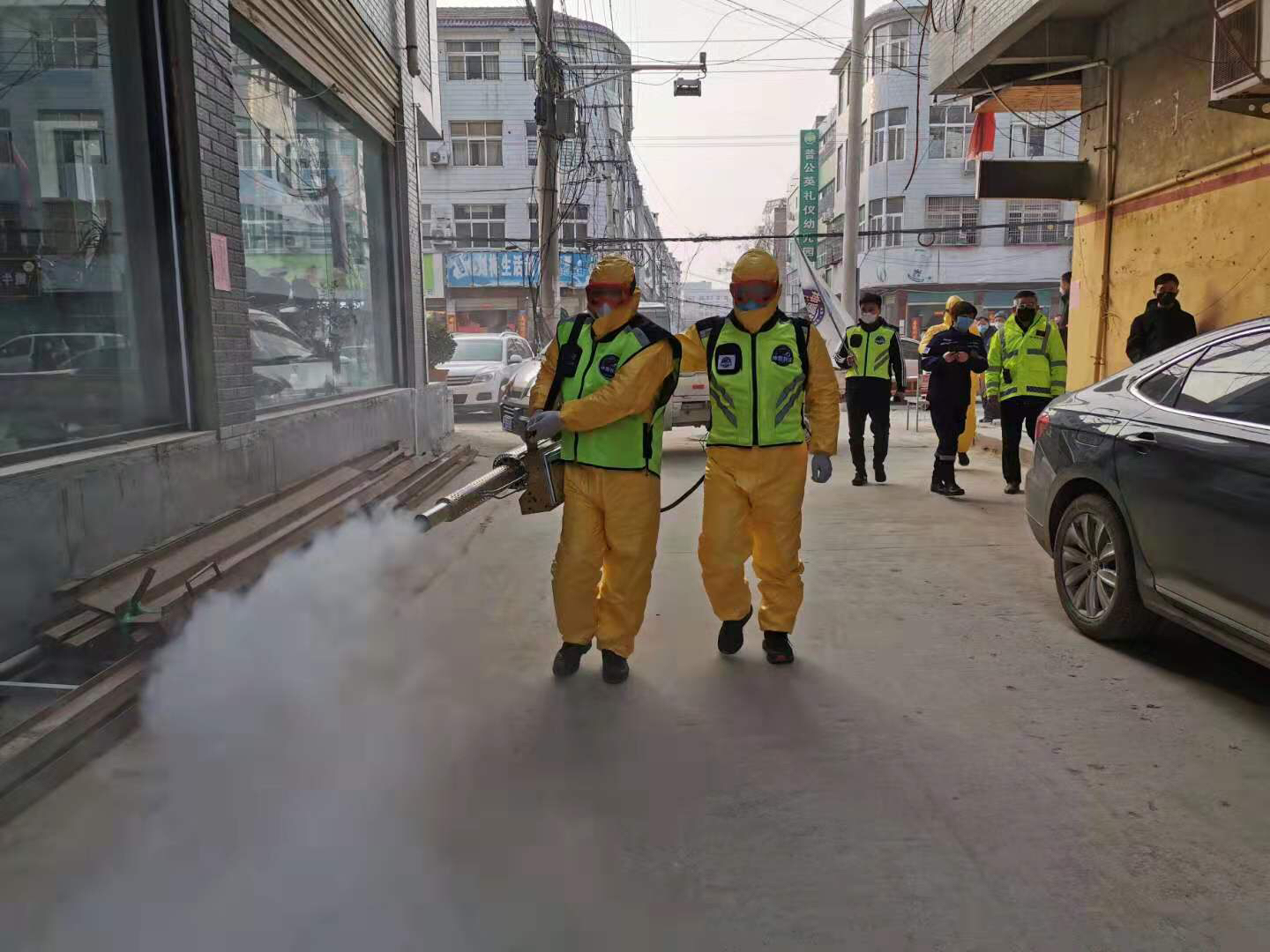 消毒殺菌,全域覆蓋。聯合縣神鷹救援大隊,對洺南轄區公共區域、居民區、背街小巷等重點部位進行衛生清理和消毒殺菌,做到全面、徹底消滅毒源,確保消毒殺菌工作落實落地,區域全覆蓋、無縫隙。