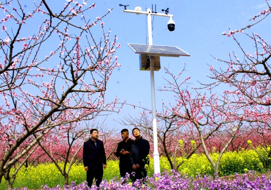 當日,西華縣委常委、副縣長周勇,黃橋鄉黨委書記楊霞同河南經貿職業學院黨委書記姚勇一起參觀了黃橋萬畝桃園,察看了安裝在潁河灣生態采栽園的“千里眼”,詢問了物聯網大數據采集、分析、使用情況,觀看了桃花仙子們的表演。姚勇對黃橋萬畝桃園美景贊不絕口,對黃橋萬畝桃園發展智慧農業寄予厚望。