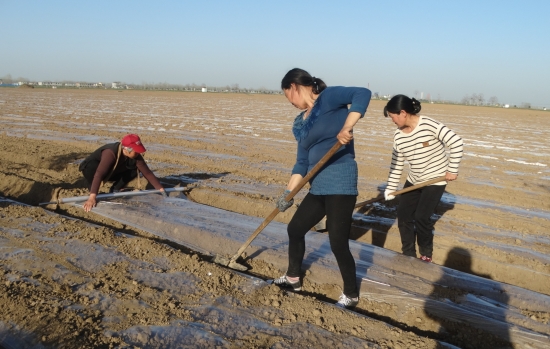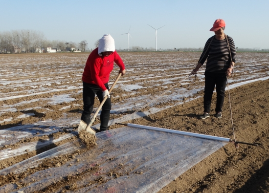 3月24日,沈丘縣周營鎮歐營村生態中藥材種植基地,當地“藥農”們正為新種植的白術,覆蓋農膜增溫保墑。