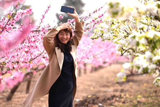 近日,泛區農場萬畝果園內梨花、桃花競相盛放,粉色桃花似錦,白色梨花如玉砌,置身其中,宛如人間仙境,吸引了不少游客前來觀賞。
