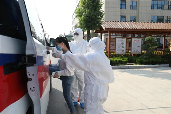 16:20,醫院急診負壓救護車和急救人員到發熱門診就位,急救中心司機邱華杰、護士歐寧寧、醫生劉洋將疑似患者轉運到救護車上,護送病人轉運至縣人民醫院。