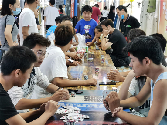 9月13日下午,在位于五一地下廣場的周口·果果茂內(nèi),不少市民在參加網(wǎng)紅斗地主爭霸賽活動。據(jù)了解,該活動是每周六、周日舉行,不少來此購物的市民參加了此項(xiàng)活動。主辦方不收取費(fèi)用,主要是為了給購物們市民增加點(diǎn)娛樂,增強(qiáng)購物中心的人氣。此前還舉辦過五子棋比賽等活動。