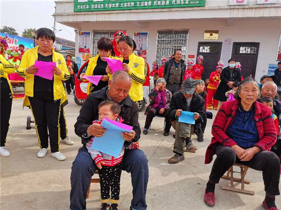“俺家住在老冢鎮,平安建設常宣傳。專職巡邏無被盜,提高群眾安全感……”這是10月20日,在太康縣老冢鎮新李村文化廣場上村民們表演的方言快板《安全感調查》,通俗易懂的語言,精彩有趣的說唱贏得了在場群眾的陣陣掌聲。