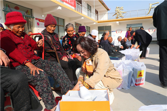 10月23日,在一年一度的重陽節即將到來之際,市人大代表薛華杰、楊輝等組團來到太康縣城郊鄉王東月居村聯養點,給這里的特困老人每人送去一雙愛心鞋,讓老人感受到了“有兒有女”的快樂。
