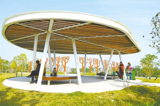商水縣在文明城市創建過程中,堅持把創建工作與完善城市基礎設施、提升市民文明素質緊密結合起來,統籌推進、一體實施,努力打造設施完善、生態宜居的周口中心城區南花園。圖為:10月24日上午,市民在剛剛建成的商水森林公園(一期)游玩。