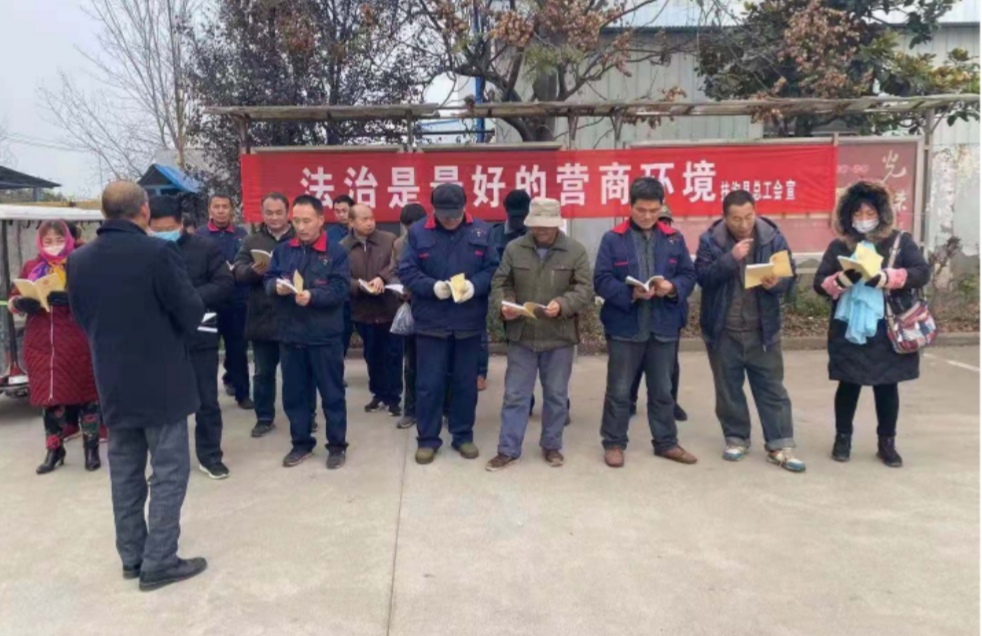 12月4日上午,市總工會到億星集團為工會干部和職工進行普法宣講,組織了職工通過豫工惠進行憲法、民法典知識有獎答題,市總工會法律顧問、律師志愿者講解了《民法典》知識,發放了工會“一法一條例”(工會法、河南省工會條例)、豫工惠使用手冊指南以及有關法律法規資料。市總工會黨組成員、副主席郭建軍組織參加了學習宣傳活動。