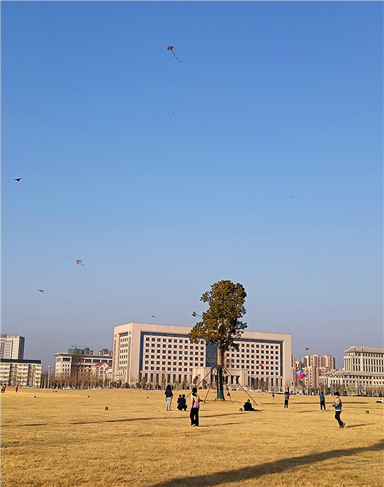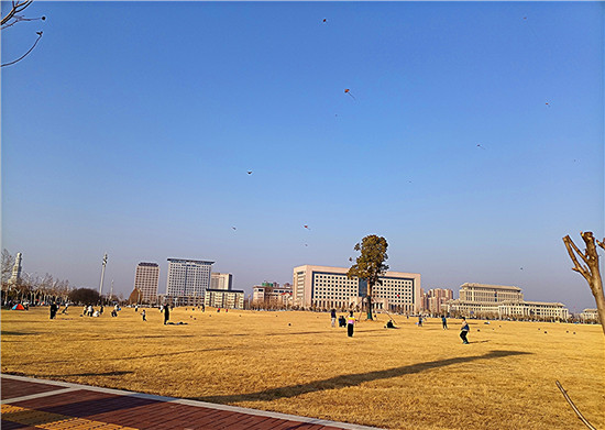 2月5日,我市天氣晴朗,不少市民帶著孩子來到戶外,享受溫暖的陽光、和煦的春風、與孩子一起放紙鳶的天倫之樂。