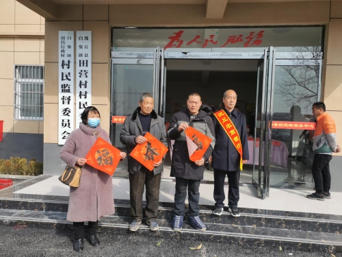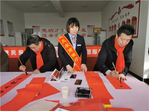 牛年春來(lái)早,農(nóng)家喜事多。2月7日,陽(yáng)光明媚,春光普照。沈丘縣農(nóng)商銀行組織省市書協(xié)著名書法家來(lái)到沈丘縣白集鎮(zhèn)田營(yíng)村, 為村民義寫春聯(lián)。