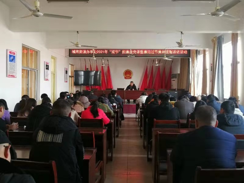 在春節(jié)、元宵節(jié)即將來臨之際,川匯區(qū)城南街道辦事處開展2021年“雙節(jié)”前廉政黨課暨廉潔過節(jié)集體談話活動,要求黨員干部增強廉潔自律意識、筑牢思想防線,確保過一個風(fēng)清氣正的“雙節(jié)”。