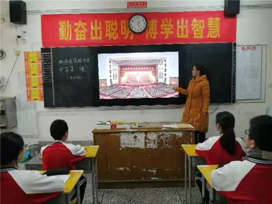 “在浙江省嘉興市有一處美麗的風景——南湖,不僅以秀麗的煙雨風光享有盛名,而且還因中國共產黨第一次全國代表大會在這里勝利閉幕而備受世人矚目……”3月1日上午8時30分,記者在扶溝縣回族小學看到,學校全體師生正在同一時間觀看“開學第一課”。