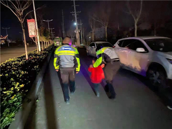 3月12日晚,鄲城縣交警大隊鐵騎中隊副中隊長張鑫值班過程中發現一位迷路小孩,張新等人想方設法把孩子護送回家。