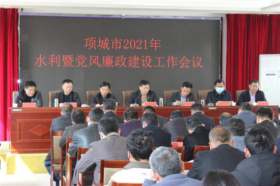 3月14日上午,項城市召開2021年水利工作暨黨風廉政建設工作會議。全面總結2020年全市水利工作,分析當前水利改革發展新形勢,安排部署2021年全市水利工作和黨風廉政建設任務。局黨組書記、局長孔顢堂出席,市紀委派駐第十紀檢組組長謝衛領對全市水利系統黨風廉政建設工作作出安排部署。