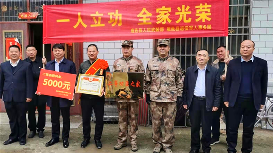 一人立功,全家光榮。3月19日上午,鹿邑縣試量鎮后楊樓行政村鑼鼓喧天,熱鬧非凡,鹿邑縣人武部、縣退役軍人事務局及試量鎮相關負責人一行,將立功喜報送到了二等功臣張國富的家人手中。