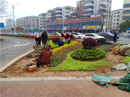 一場春雨過后,處處洋溢著勃勃生機。3月20日上午,記者在周口中心城區大慶路與交通大道交叉口處的紅綠燈旁看到,園藝工作人員正在忙碌著補種花木,黃色、綠色、紅色的花兒平鋪在一起組合成一道亮麗的風景,扮靚了街頭,令人賞心悅目。③2