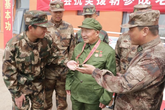 張詩義老人講述結束后,準新兵們紛紛圍著英雄,用手觸摸掛在老兵胸前的軍功章,一種志在軍營的信念播撒在這群熱血青年的心里,更加堅定了他們入伍參軍的信心和決心。