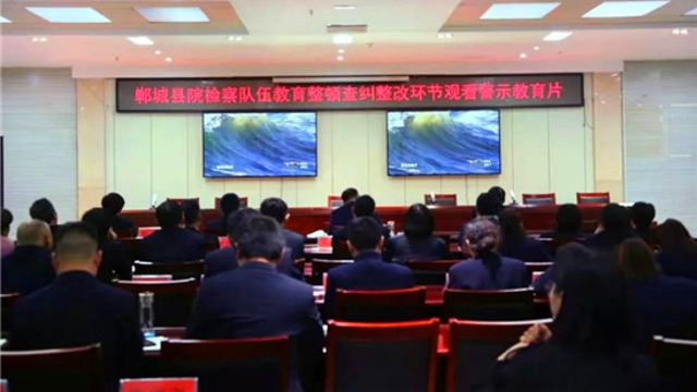 為深入推進政法隊伍教育整頓工作,5月19日下午,淮陽區人民檢察院召開教育整頓查糾整改環節警示教育大會,組織檢察干警觀看《賈小剛案警示錄》。