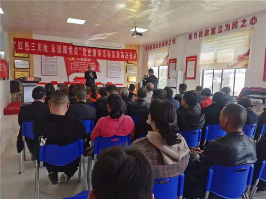 3月25日下午,川匯區“紅色三川地 永遠跟黨走”黨史宣講活動走進小橋街道辦事處高莊社區,社區宣講團成員范云峰作主題宣講。