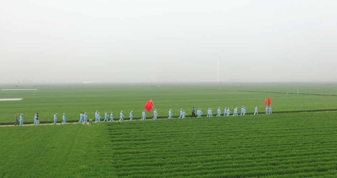 行軍途中,大家兩兩對齊,步伐堅定一致,口號嘹亮,無不展示出奉母鎮新時代基層干部的精神面貌,引來過往群眾的圍觀和贊賞。