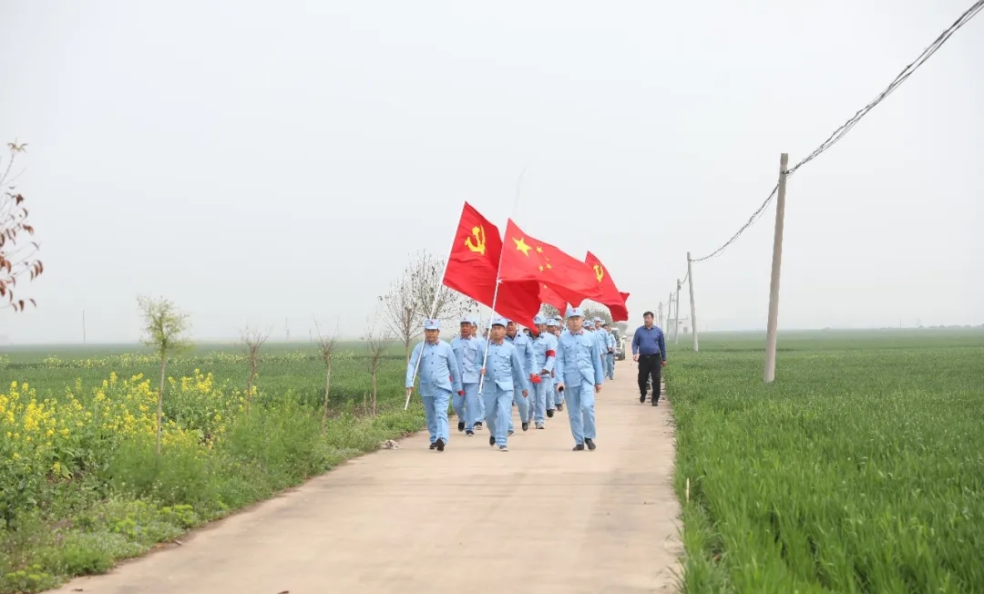“我一定要跟著大部隊走,絕不掉隊,不給紅軍前輩抹黑。”剛剛做完手術的七一村黨支部書記何治安斬釘截鐵地說。在七二村,熱情好客的七里倉群眾不僅給“大軍”送來了西紅柿、黃瓜、茶雞蛋、香蕉等補給品,還表演了“祖國你好”、“美麗生活”等扇子舞,再現了當年紅軍到哪都受人民群眾擁戴的情景,同志們的疲憊一下子煙消霧散.....按照拓展行程安排,在盆李村的“周口市第一個農村黨支部舊址”,同志們進行了參觀瞻仰和重溫入黨誓詞等活動,回顧了歷史,緬懷了先烈,震撼了心靈,錘煉了黨性。