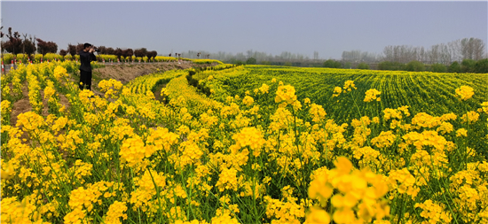 3月29日,商水縣鄧城鎮油菜花花開正盛。商水縣鄧城鎮沿沙河種植4000多畝黃色、粉色等多色油菜花,為沙河沿岸風光增加了色彩,吸引了不少附近縣市群眾賞花游玩,同時也帶動了養蜂、榨油等相關產業。