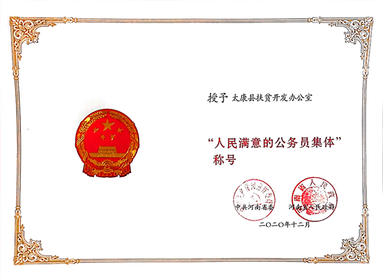 近日,省委、省政府對第四屆全省“人民滿意的公務員”和“人民滿意的公務員集體”進行表彰,太康縣扶貧開發辦公室榮獲第四屆“人民滿意的公務員集體”。