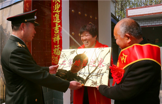 李峰說:“一張立功喜報,不僅是軍人榮譽的象征、成長進步的見證,也承載著軍人家屬的期盼與慰藉。功臣是實現強軍興軍目標的尖兵,他們在部隊建功立業,我們力所能及服務保障好他們的家人,積極在全社會營造起‘功臣受愛戴、軍人受尊崇、軍屬受尊敬’的氛圍。”為此,鹿邑縣人武部積極構建軍人軍屬榮譽體系,每逢重大節日,都要協調地方黨委、政府開展為現役軍人和軍屬送喜報,掛功臣匾、光榮牌等活動,通過活動激勵等形式,讓軍人軍屬享有更多的“專屬榮光”,努力營造“一人參軍,全家光榮;一人立功,全村光榮”的濃厚氛圍,更加堅定了軍屬支持子女獻身國防的決心,進一步激發了鹿邑籍官兵獻身軍營、報效祖國的積極性。②9