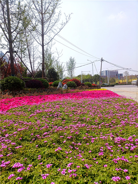 春時花事道不盡,千姿百態競嬌妍。近日,隨著天氣漸暖,我市各色花卉相繼綻放,在周口大道與建設大道交叉口一處綠化帶內,色彩繽紛的花卉編織成一條花的長廊,令人眼前一亮。