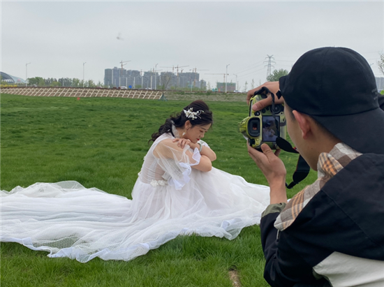 “太適合拍照了,在這拍出的照片很有高級感,隨手一拍就很好看?!睌z影師張建闊告訴記者,前兩天路過這里,看到這里的草長勢非常好,非常適合拍照,就帶著團(tuán)隊(duì)過來了。