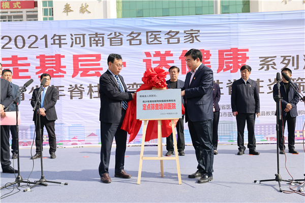 4月18日,2021年河南省名醫名家“走基層?送健康”系列活動——走進鄲城暨在校青少年脊柱側彎和強直性脊柱炎篩查義診?志愿者服務行動在鄲城縣第二實驗中學啟動。