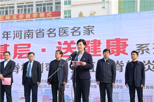 羅文閣致歡迎詞。她說,只有全民健康才有全面小康。今天,河南省在校青少年脊柱側彎和強直性脊柱炎篩查義診活動走進鄲城,對鄲城孩子們的健康成長是件好事、實事,我們將全力以赴,做好配合,爭取讓項目惠及更多患者,同時希望全縣廣大醫護工作者以這次活動為契機,珍惜難得的學習機會,從名醫名家身上,學習出類拔萃的醫療技術、德藝雙馨的大醫情懷、心系群眾的高尚情操、不辭勞苦的敬業精神,不忘初心、牢記使命,勤學苦練、提升本領,為鄲城創建國家健康縣城、做好鞏固拓展脫貧攻堅成果同鄉村振興有效銜接作出更大貢獻。
