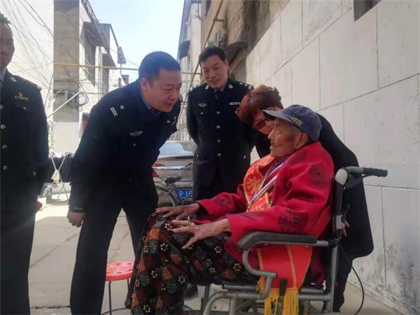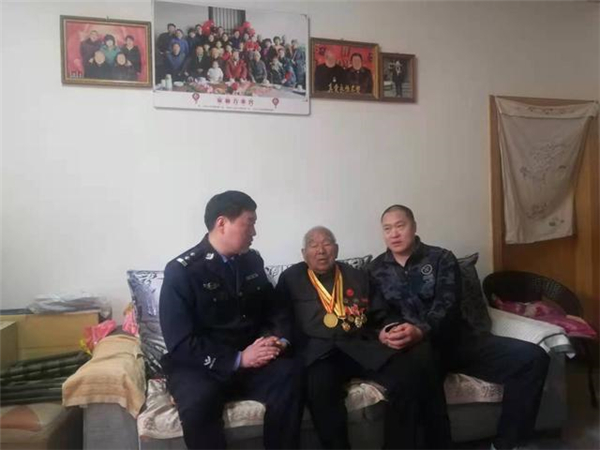 一大早,該所黨員民警身著戎裝,排著整齊的隊伍,分別前往荷花路派出所轄區(qū)的閆莊社區(qū)、荷花社區(qū)、前王營等社區(qū),探望慰問年逾花甲的抗戰(zhàn)老英雄,聆聽他們在抗擊侵略的戰(zhàn)斗歲月里浴血奮戰(zhàn)、不屈不撓的感人故事。在戰(zhàn)斗英雄尤洪亮家中,民警深切感受了那場保家衛(wèi)國反擊戰(zhàn)的慘烈,看到了新時代最可愛的人。