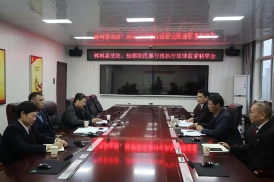 為進一步推動教育整頓工作,認真落實省院、市院關(guān)于開展民事行政執(zhí)行法律監(jiān)督專項活動的要求,推動民事、行政檢察工作順利開展,解決人民群眾反應(yīng)強烈的執(zhí)行難、執(zhí)行亂等問題,4月20日下午,鄲城縣檢察院黨組書記、代檢察長陸智明和縣院黨組成員、副檢察長馬立強以及第四檢察部員額檢察官李平會同縣法院有關(guān)領(lǐng)導(dǎo)召開了民事行政執(zhí)行法律監(jiān)督聯(lián)席會。縣法院黨組書記、院長王洪彬應(yīng)邀出席會議。